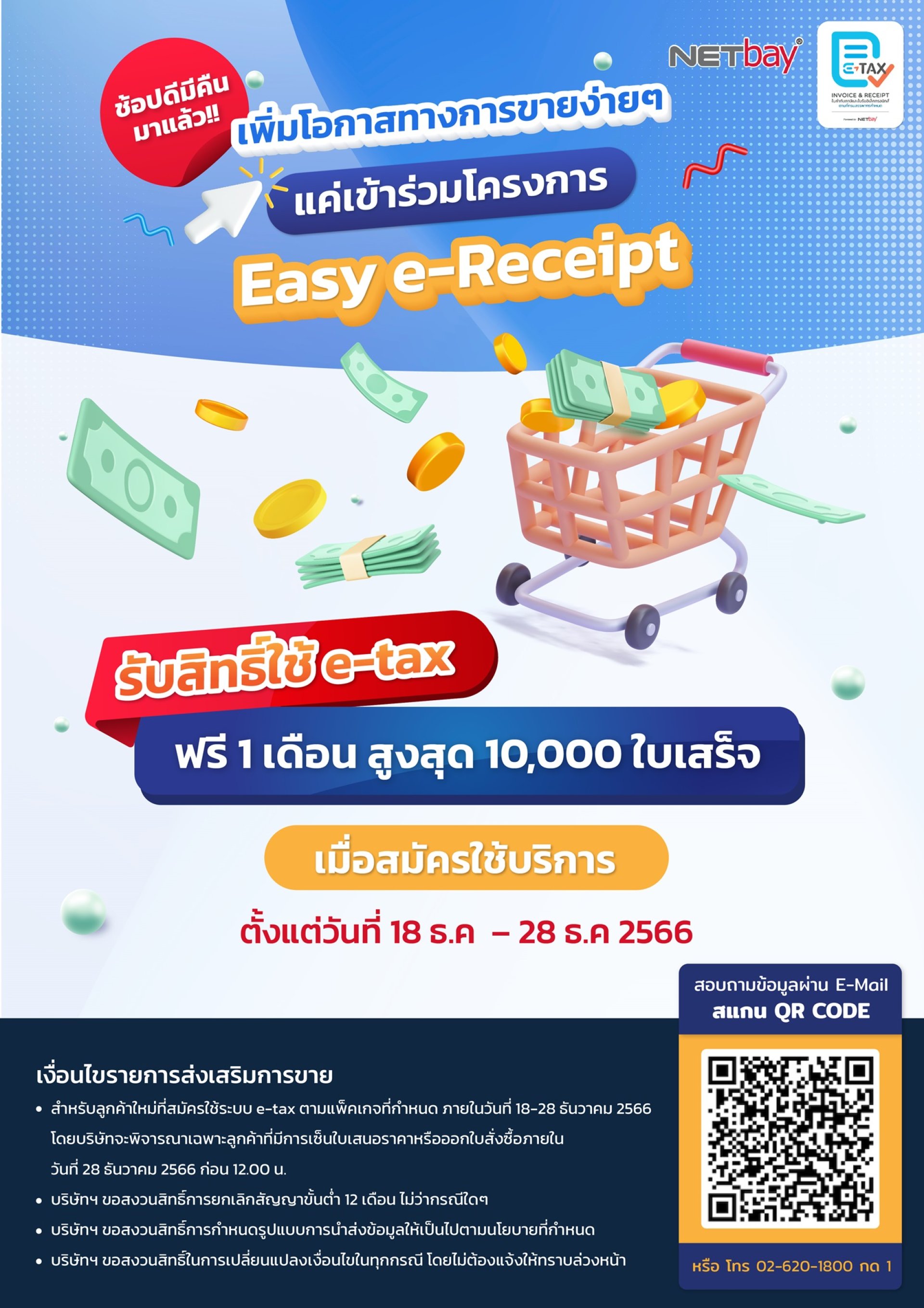 - รับสิทธิใช้ E-Tax ฟรี 1 เดือน (สูงสุด 10,000 ใบเสร็จ)