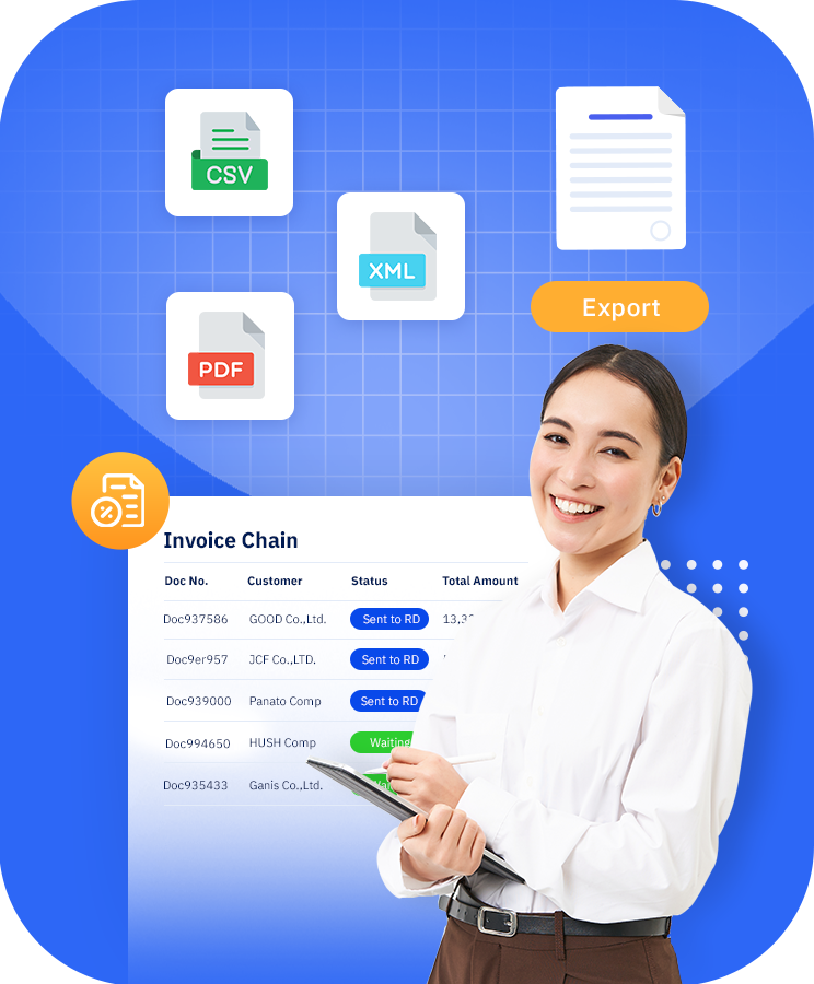 E-TAX expertly converts invoice data into the XML format required by the Thai Revenue Department, simplifying compliance.