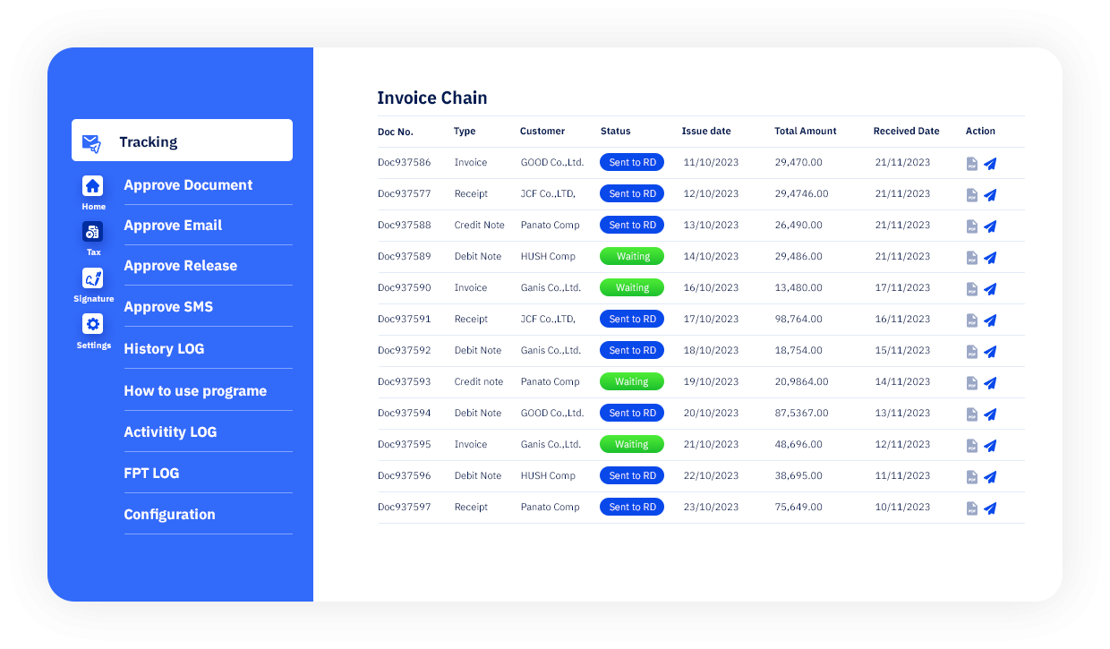 documents online, meeting Thailand's 10-year invoice storage rule. This means less worry about keeping and finding paper records, making your document management easier and more